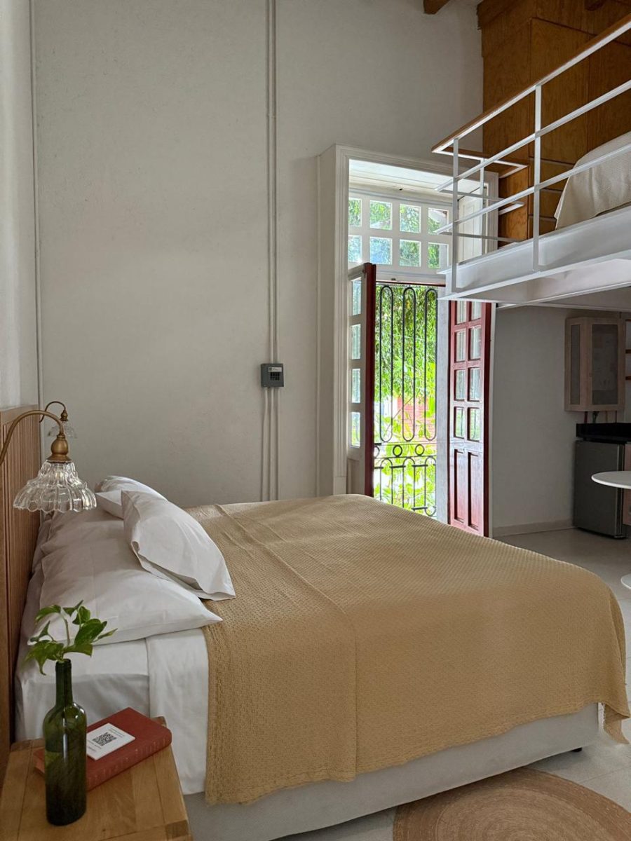 Nuestra habitación tipo loft doble es una opción excepcional para aquellos que buscan comodidad y calidez en su estancia. Cuenta con dos camas y encontrarás una acogedora sala de estar, un práctico comedor, una funcional cocineta, un amplio armario para almacenar tus pertenencias y dispondrás de un baño privado para tu mayor comodidad . La habitación está totalmente equipada con todos los servicios que necesitas para una estancia confortable.